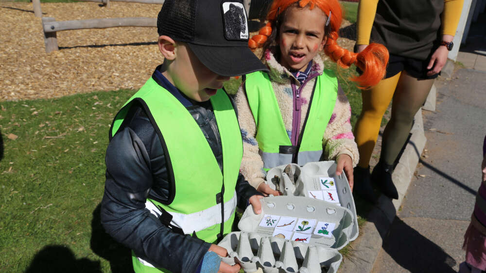 Ute på gården vid Snickaregårdens förskola i Rörvik är ett gäng sakletare i full gång i sann Pippi-anda.