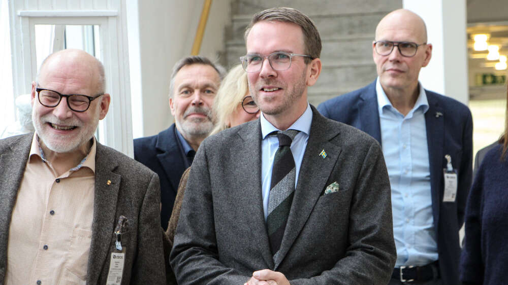 Bostadsminister Andreas Carlson (KD) på besök hos Myresjöhus. Foto: Frida Ohlin