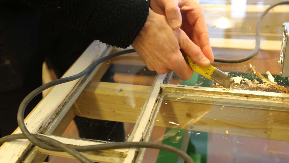 – Har man intresse kan man fixa mycket själv - skrapa, måla, kitta. Men ska man laga en båge, byta trä eller hantera glas på rätt sätt, då behövs ofta jag. Och man behöver också vissa verktyg och ett utrymme att jobba på.