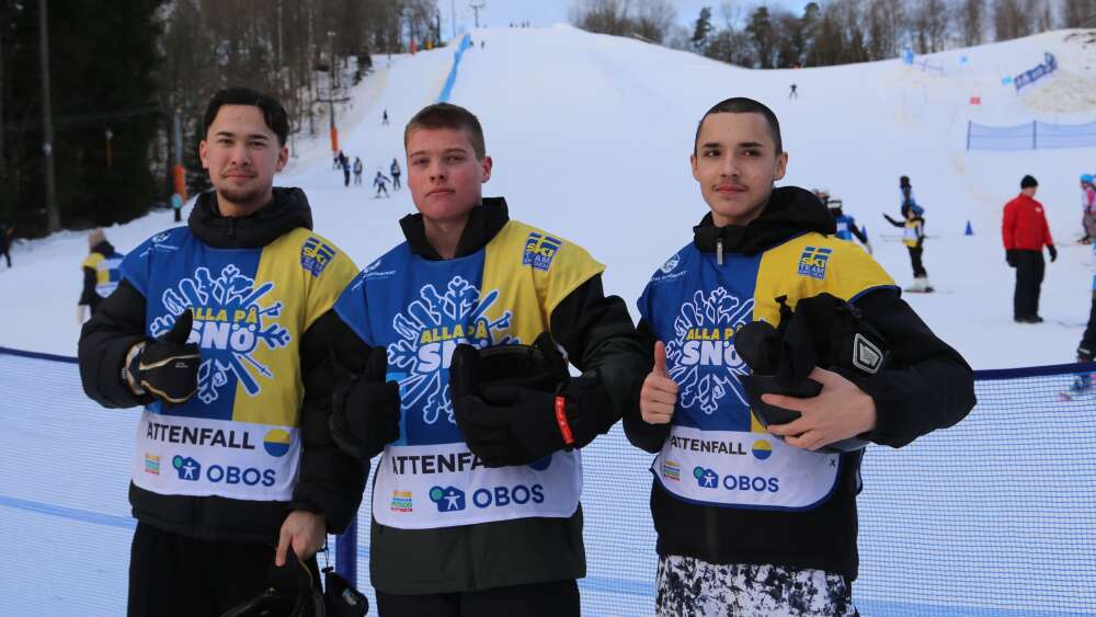Alvin, Mahmoud, Mikael och de andra fyrorna får hjälp av bland andra Albin Petersson, Marcus Dahlström och Mohsen Hazari Jafari. Trion går på Aleholmsgymnasiet där de läser Idrott och hälsa 2. Att hjälpa till vid Alla på snö är en del av kursen.